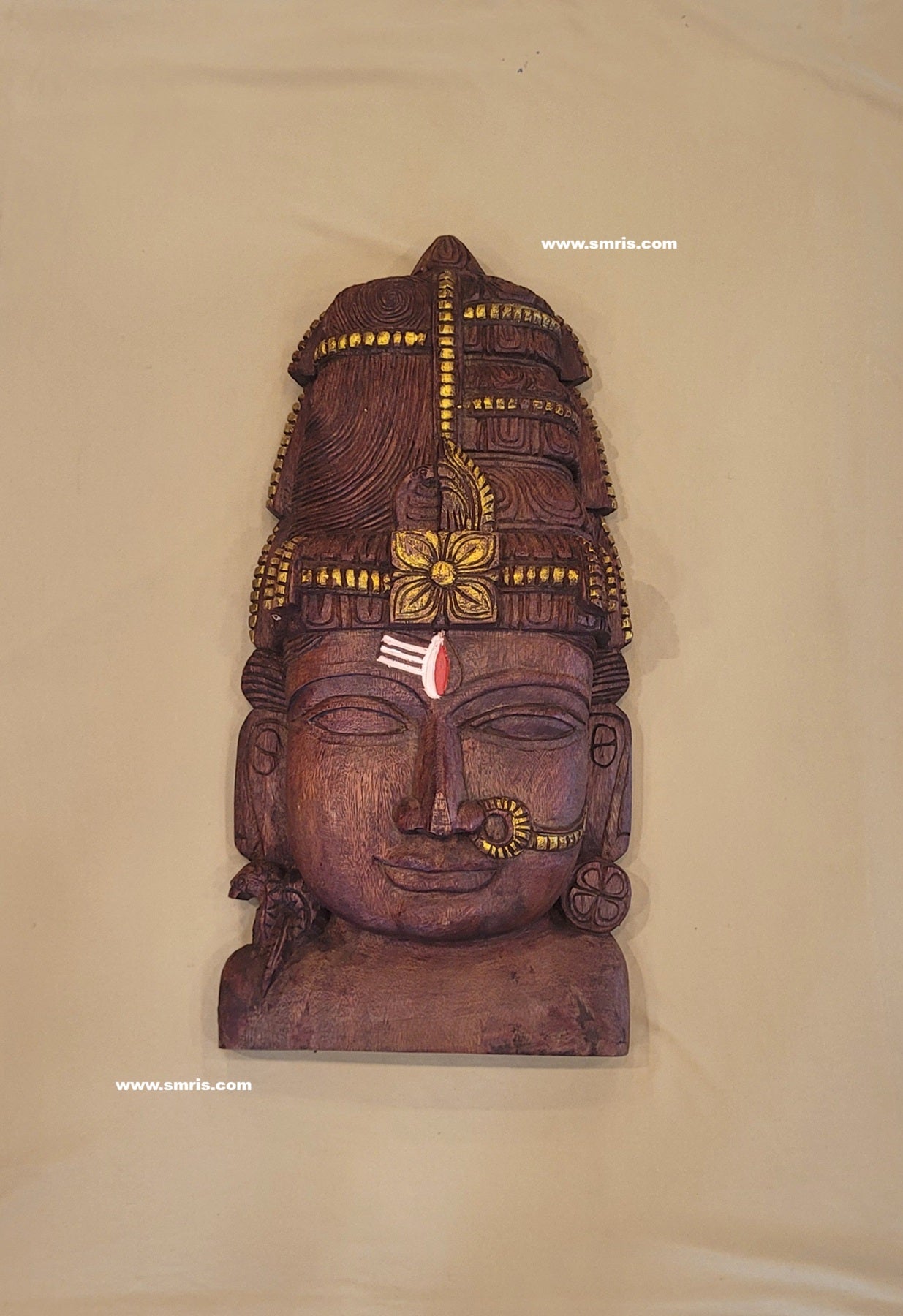 Arthanareeswarar Siva parvati Shiva Sakthi Face Mask Wall Panel Mahogany Wood Carving Wall Hanging Pooja Decor Traditional Indian Handicrafts (24.5H x 12L x 5W Inches)