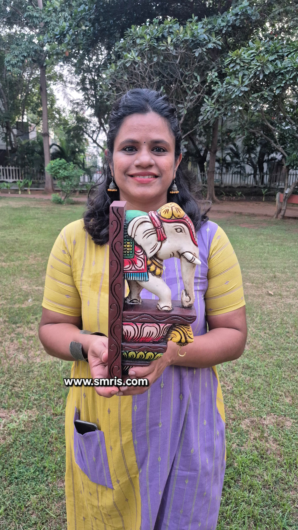 Elephant Wood Carving Wall bracket / Corbel traditional Chettinad Handicrafts White