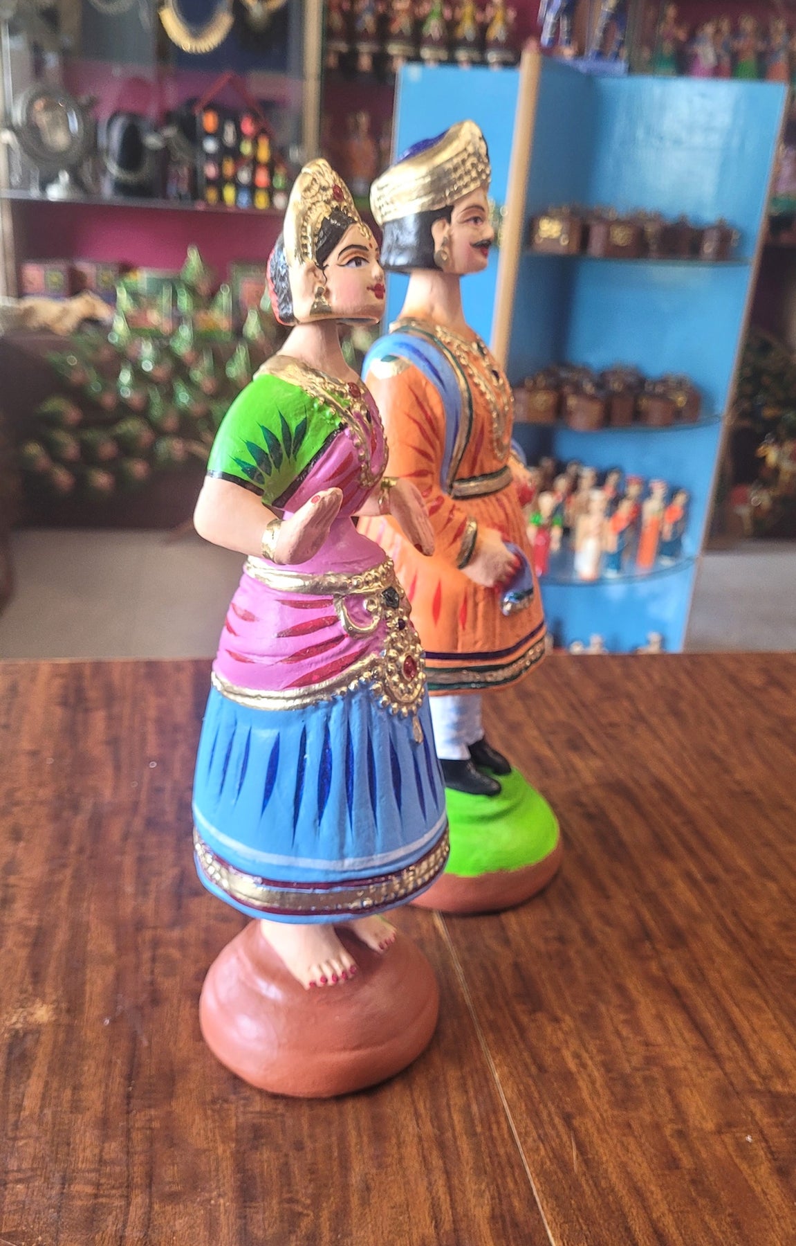 Raja Rani Dancing Doll 12 inch orange raja with Green blouse rani Thalayatti Bommai Show piece Table Decor papermache Inches