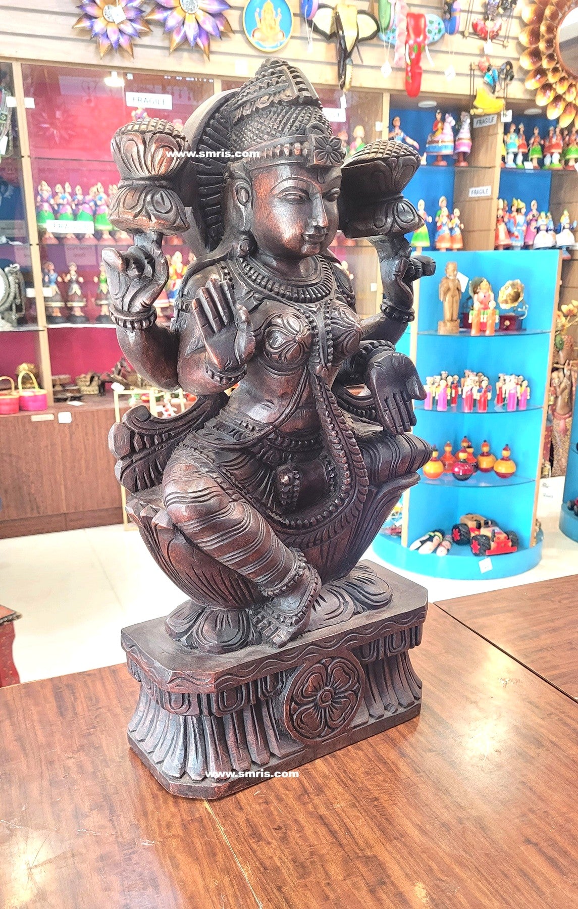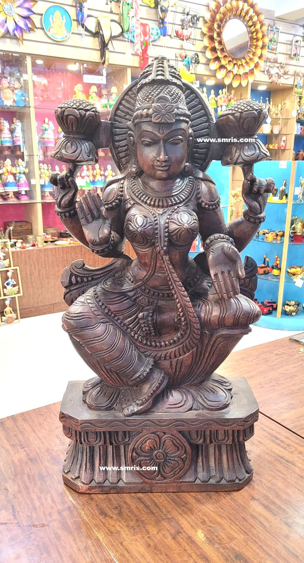 Product Overview: Elegantly handcrafted Goddess Lakshmi Wooden Statue Sculpture Idol made from premium Vaagai wood with a rich rosewood colour finish.