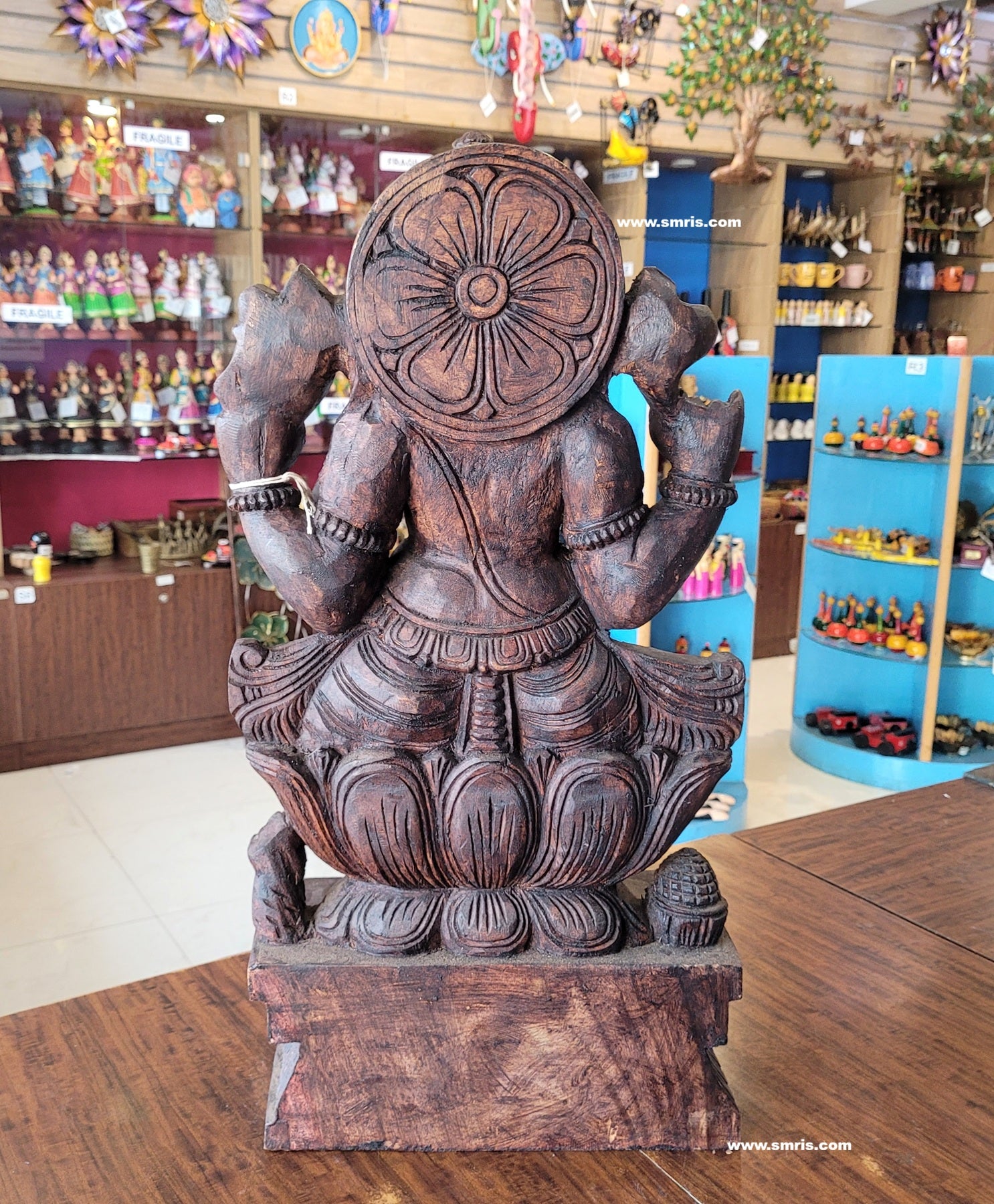 Elegant rosewood colour wooden sculpture that enhances both traditional and modern interiors, ideal as a pooja table décor, festive decoration, or spiritual centerpiece.