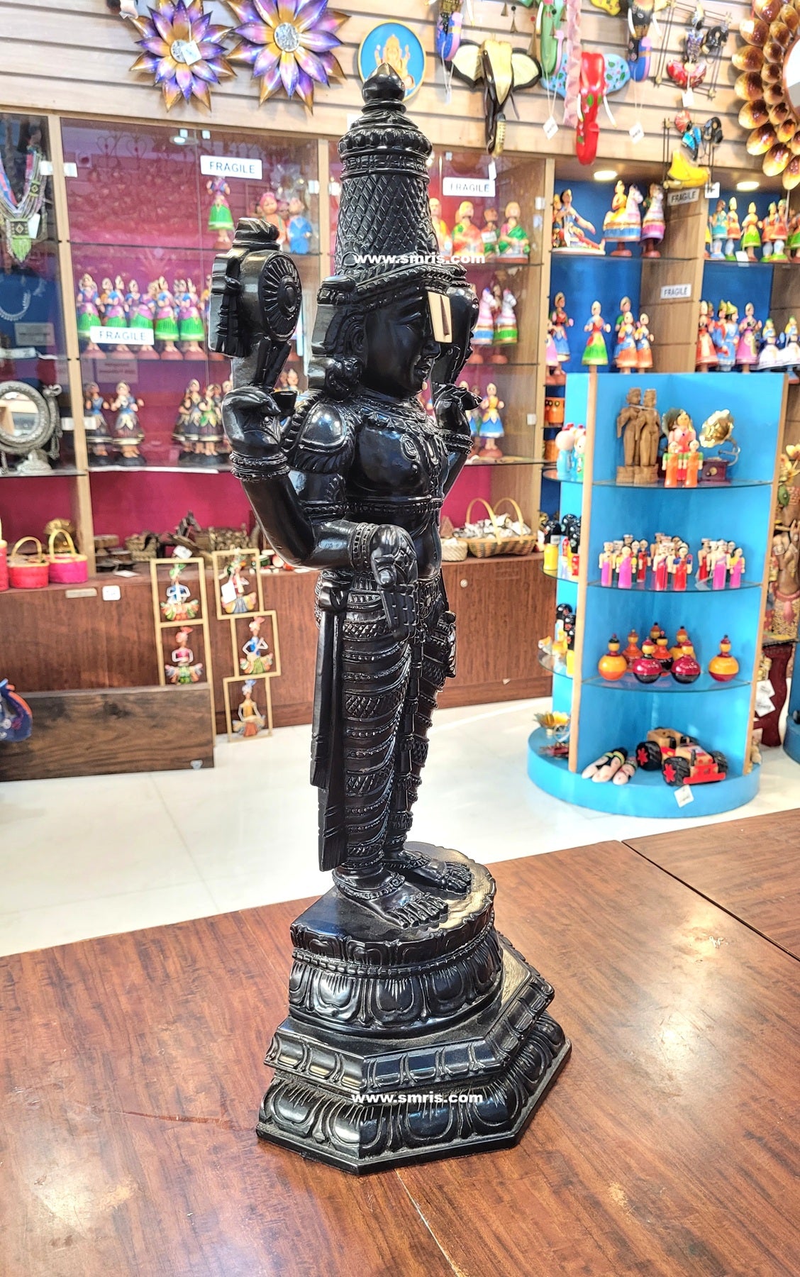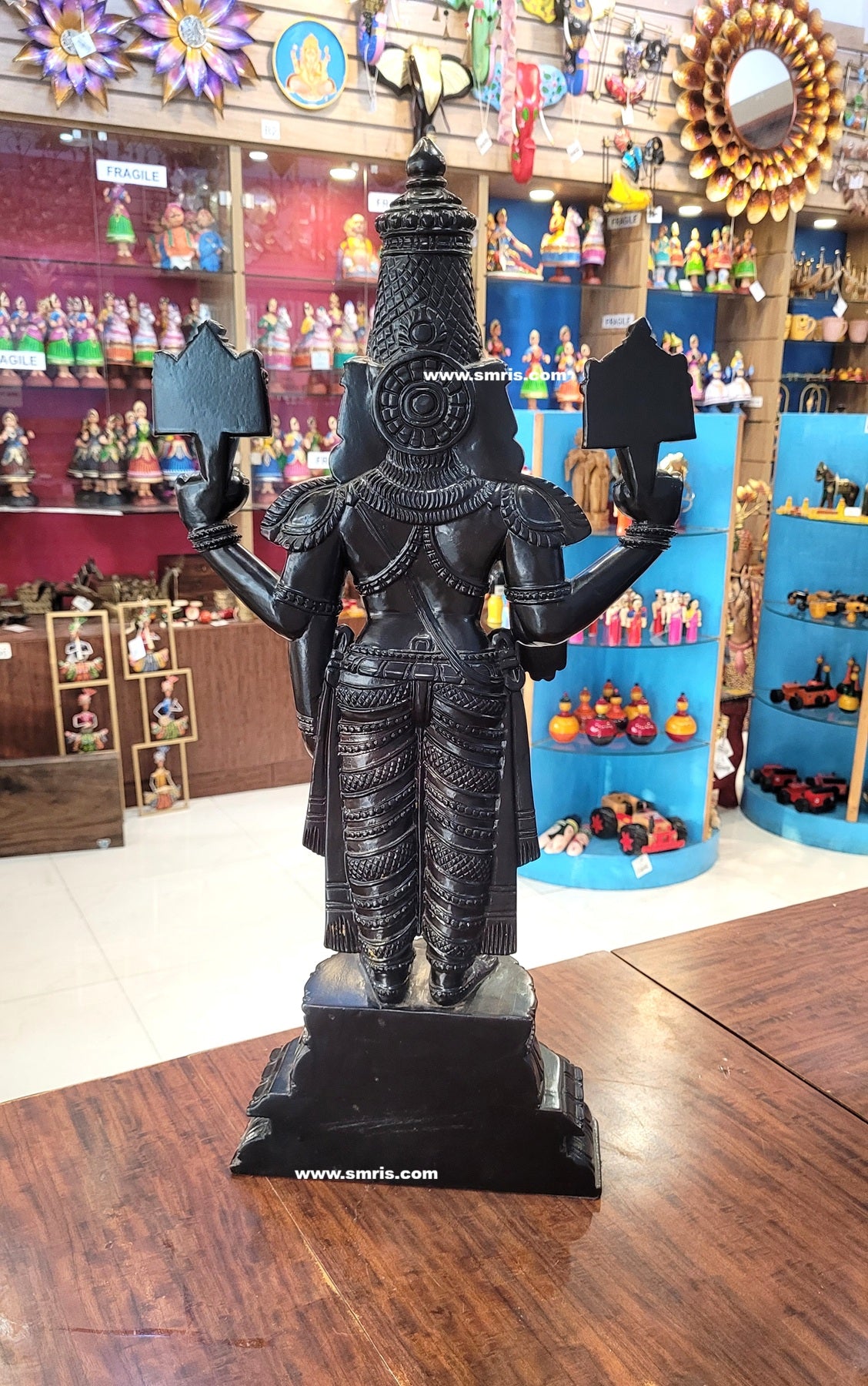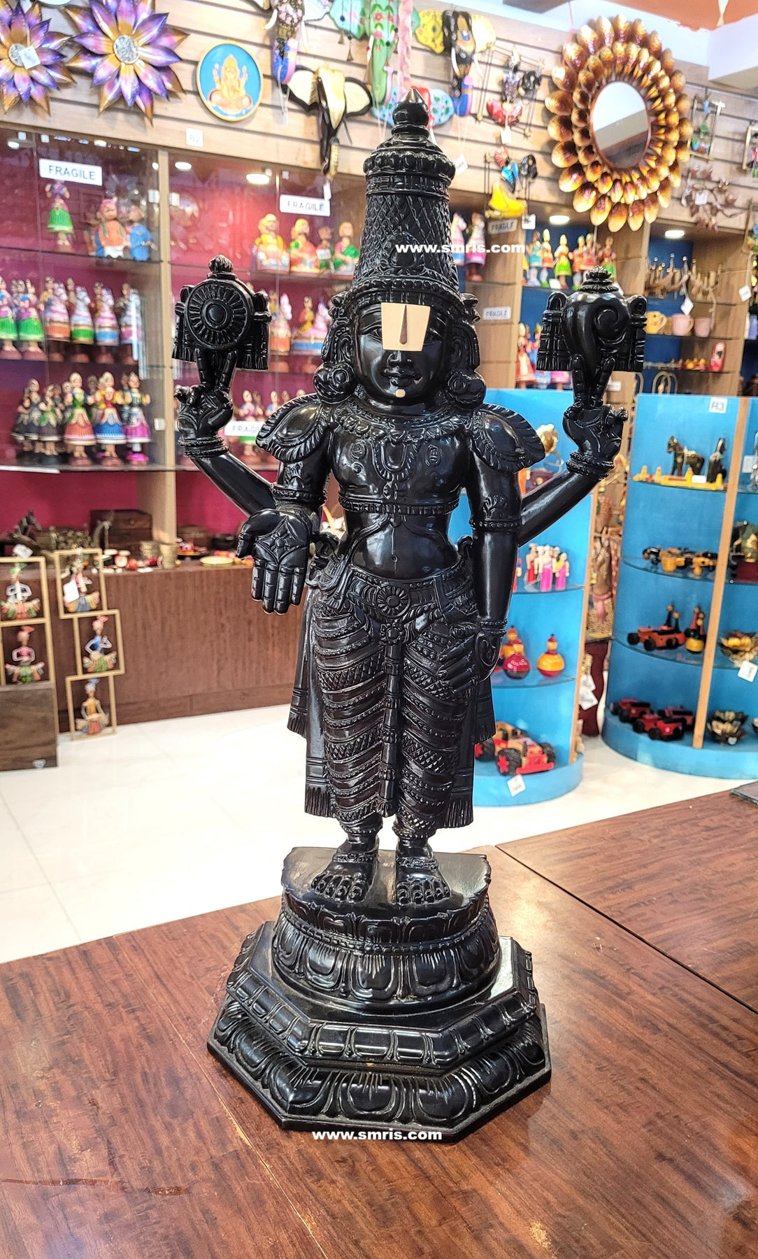 Product Overview – Magnificently handcrafted Lord Kalyana Balaji / Perumal Wooden Statue carved from premium Kodukapuli wood with vibrant colour detailing. This traditional Indian handicrafts sculpture reflects divine grace and temple-inspired artistry, making it a perfect pooja idol and spiritual décor centerpiece.