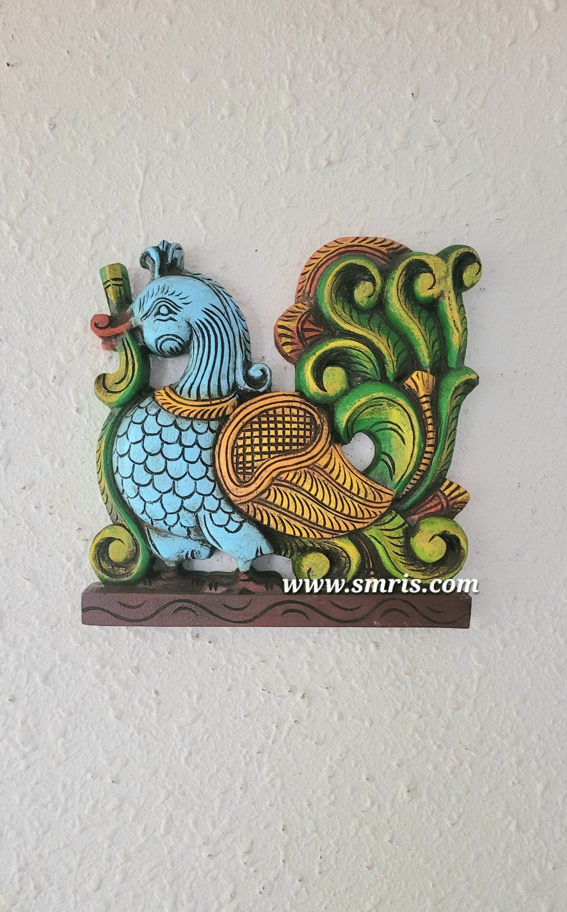 Product Overview: The Annam Wooden Wall Panel and Table Decor (Right Side) is a handcrafted mahogany wood carving inspired by traditional South Indian temple art. The Annam bird, a symbol of purity, grace, and prosperity, adds a spiritual and aesthetic touch to your foyer, living space, or pooja room.