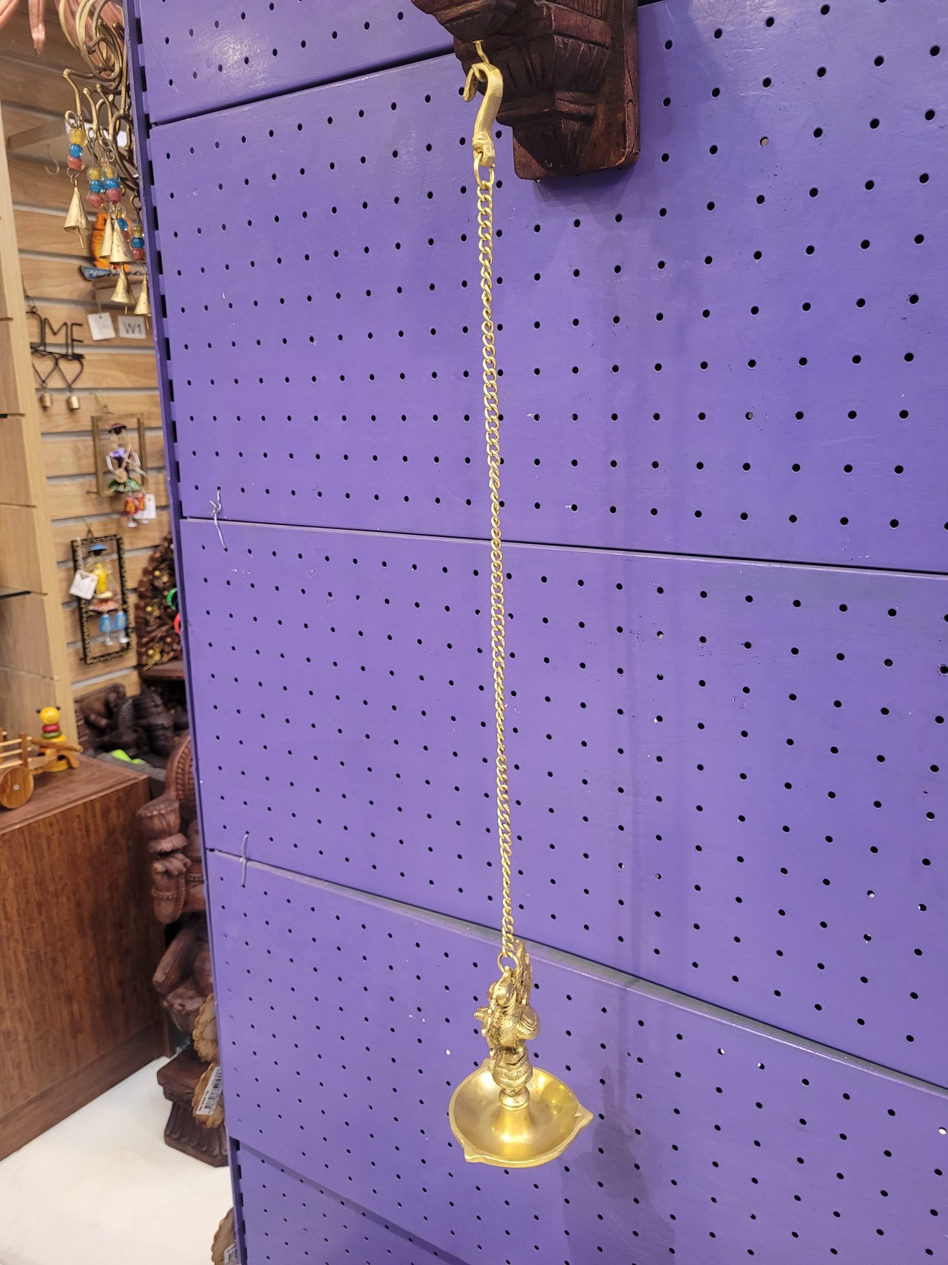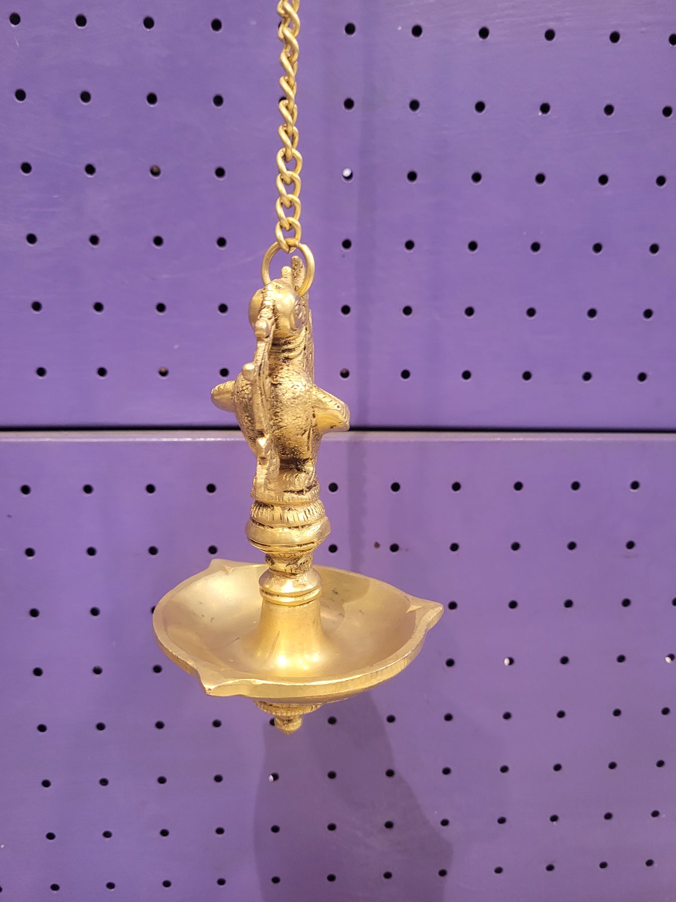 Designed as a hanging oil lamp with sturdy chain, ideal for temples, pooja rooms, and entrances