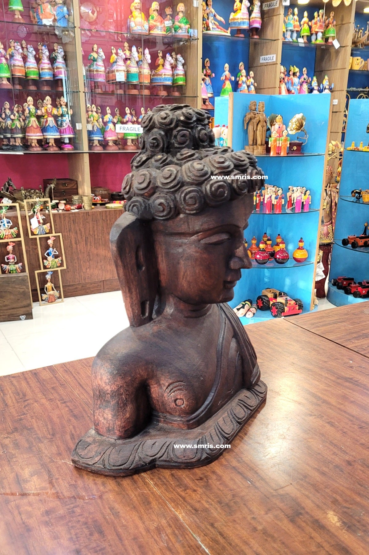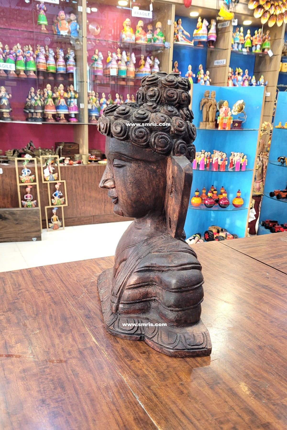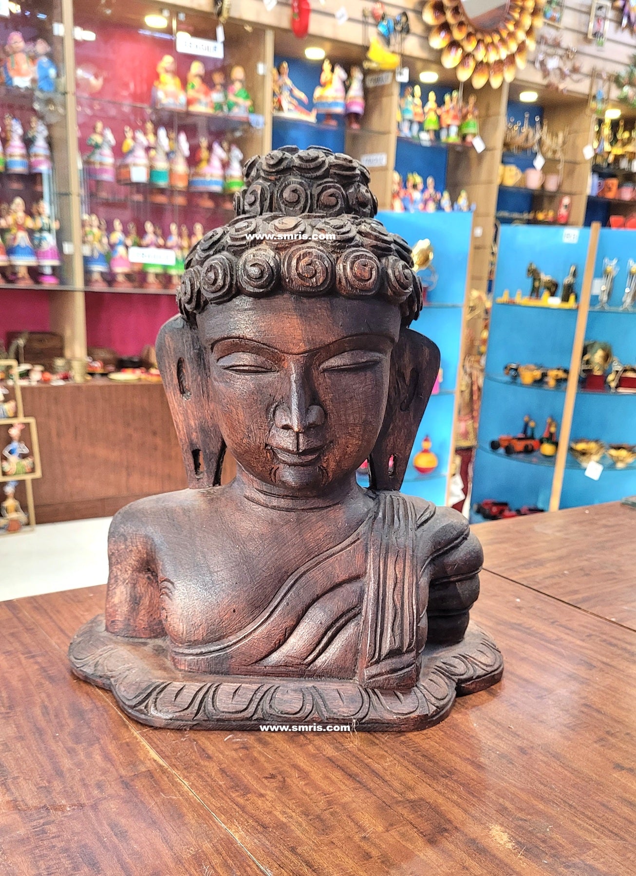 Product Overview – Artistically handcrafted Buddha Wooden Face Idol made from premium Vaagai wood with an elegant rosewood colour finish. Designed in authentic Chettinad wooden carving style, this serene sculpture reflects peace, mindfulness, and traditional Indian craftsmanship, perfect for pooja and home décor.