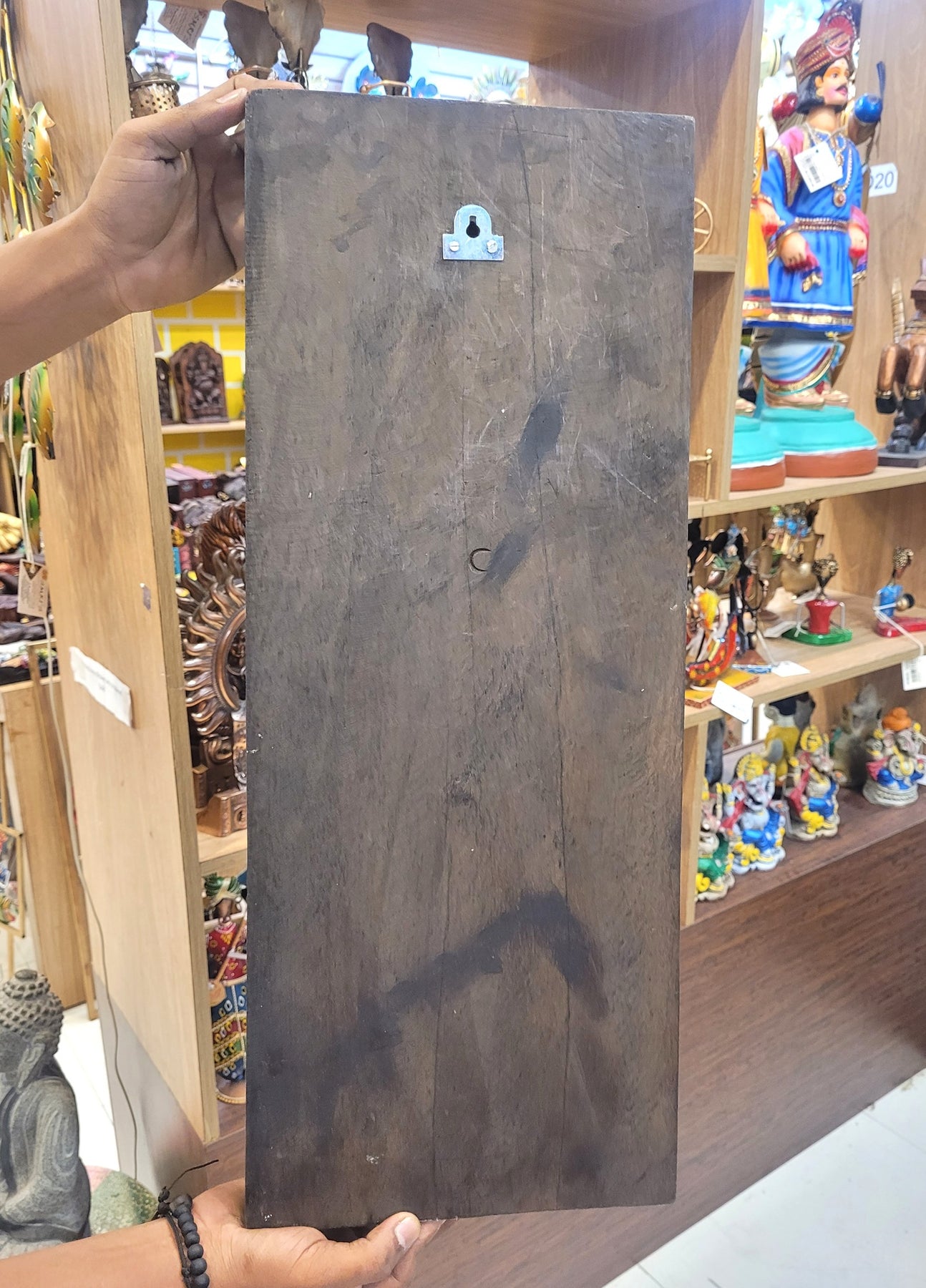 Bring home the blessings of wealth, prosperity, and peace with this intricately carved Goddess Lakshmi panel in rich mahogany wood, a masterpiece of Chettinad traditional craftsmanship.