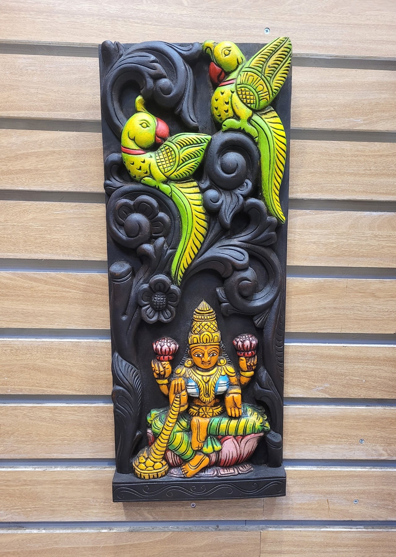 Godess Lakshmi with 2 Parrots 🦜 🦜 mahogany wooden carving Indian traditional chettinad handicraftsÂ