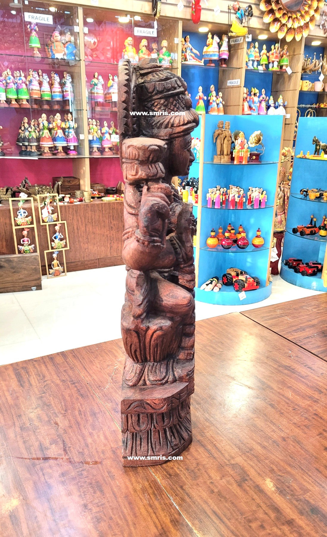 Authentic Indian handicrafts wooden statue handcrafted by skilled artisans, showcasing fine detailing, natural wood texture, and long-lasting durability.
