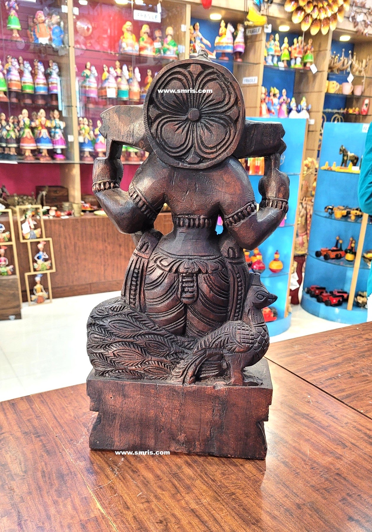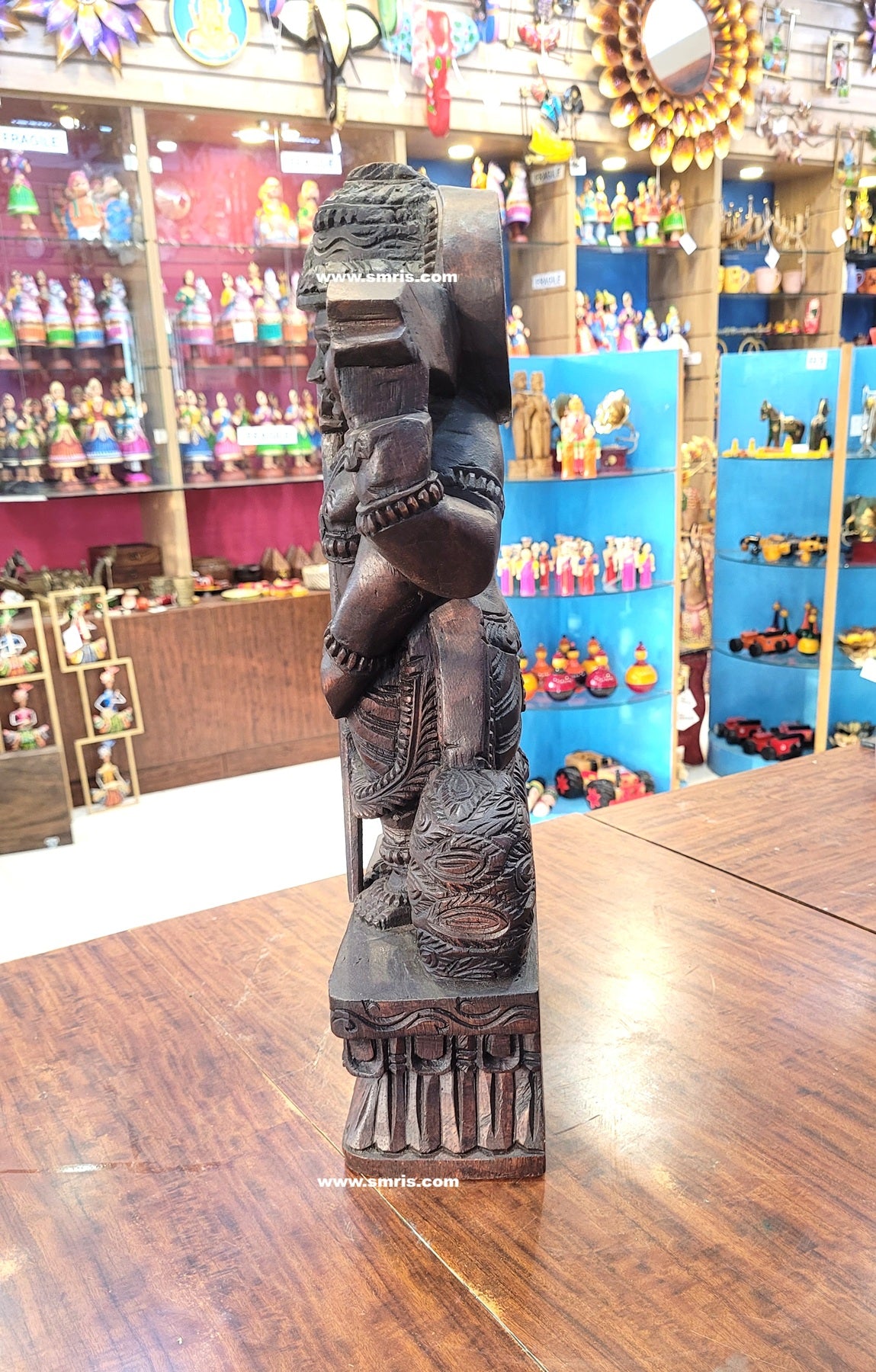 Authentic Indian handicrafts wooden statue handcrafted by skilled artisans, showcasing fine detailing, natural wood grain, and lasting durability.