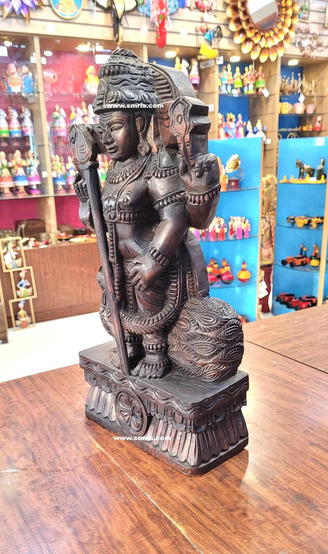 Product Overview – Exquisitely handcrafted Murugar Wooden Statue made from premium Vaagai wood with a rich rosewood colour finish. Designed in authentic Chettinad wooden carving style, this divine sculpture reflects traditional South Indian artistry, making it ideal for pooja and spiritual home décor.