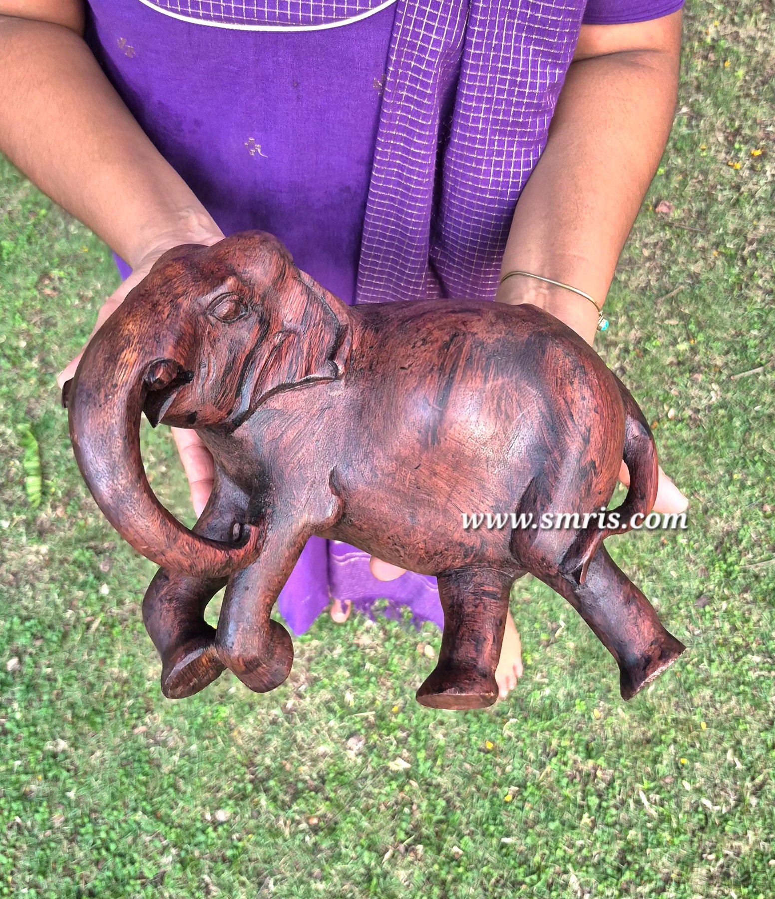Expertly hand-carved by skilled artisans, capturing fine details of the elephant form, reflecting the richness of traditional wood carving art.
