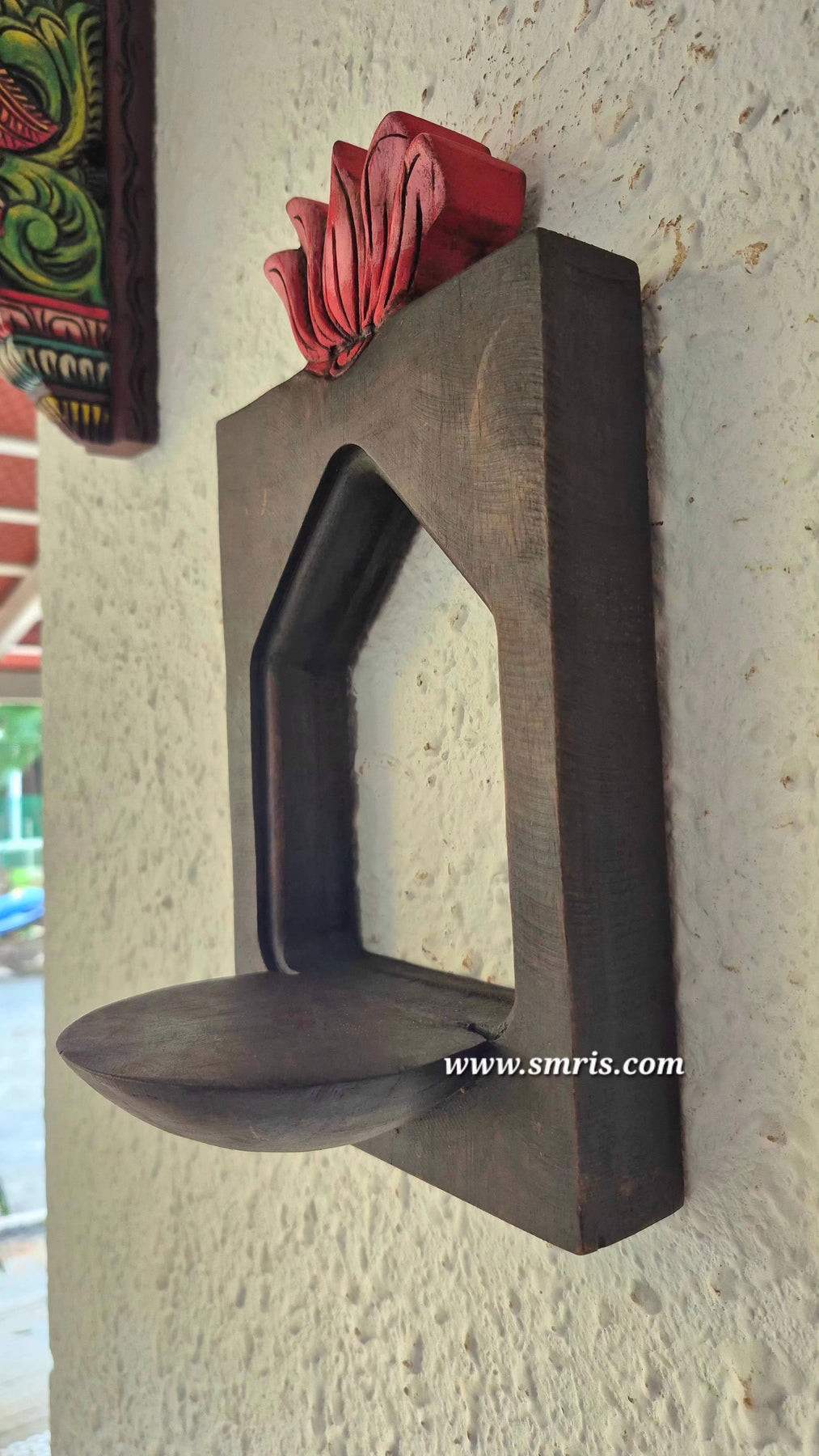 Vilakku Maadam with Lotus Wall Lamp Holder Mahogany Wooden Wall Hanging Wooden Carving Hanging Decor Corbel Traditional Chettinad Indian Handicrafts (12 H * 7 L * 5 W Inches)
