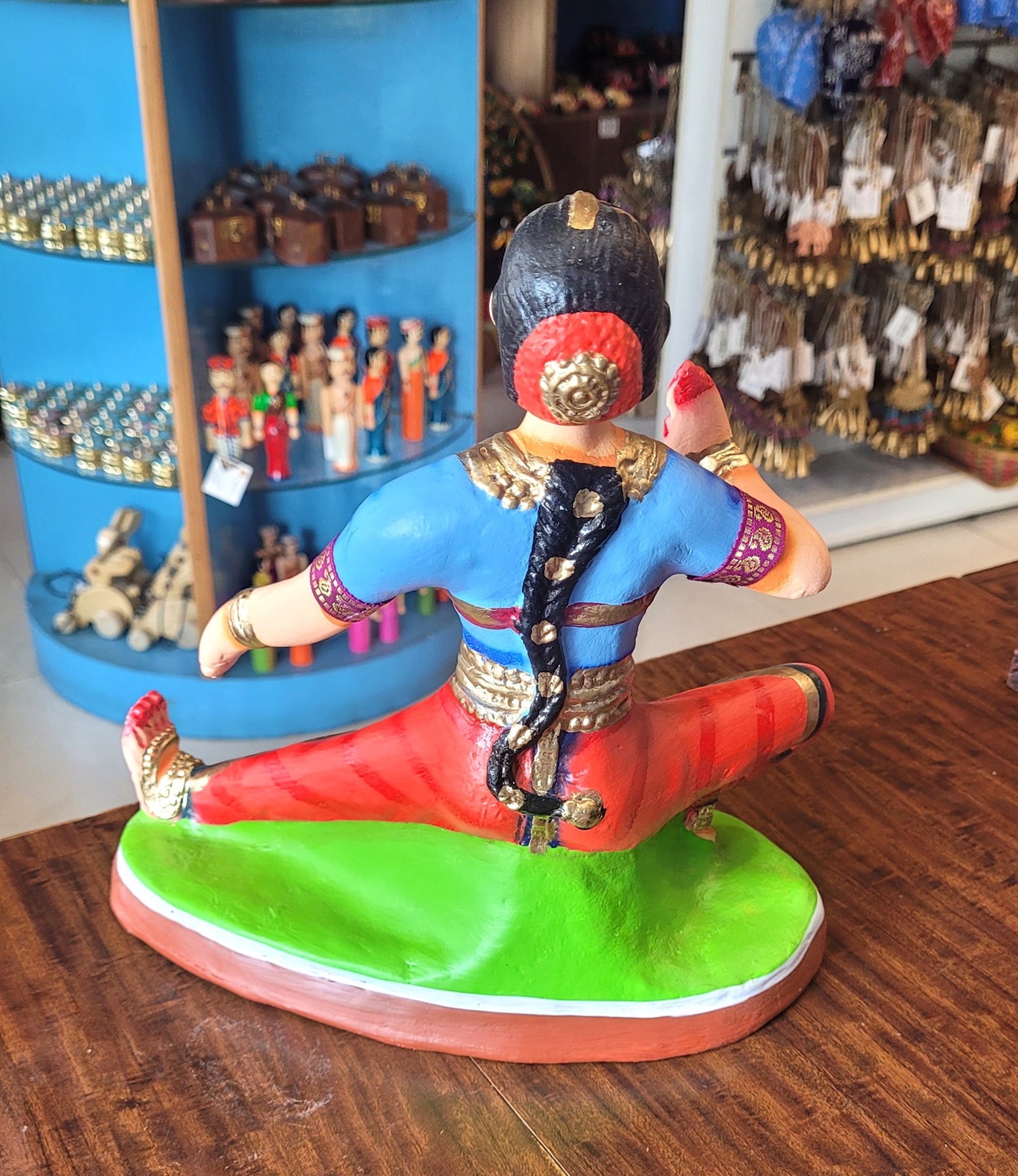 Bharathanatiyam Tanjore Dancing Doll Sitting ( Blue, Orange ) Paper Mache Handmade Thanjavur Thalayatti Bommai Table Decor Show Piece Golu Dolls (10 H * 5.5 L * 5.5 W ) Inches
