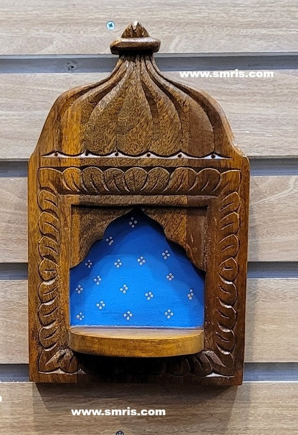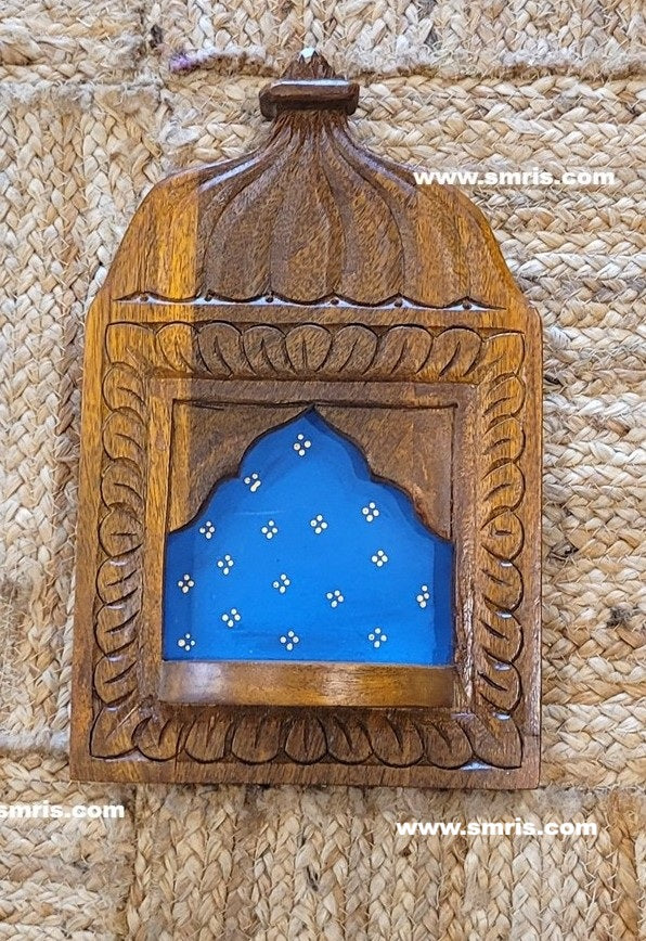 Product Overview: Beautiful Jharokha Mahal Vilakku Maadam Frame handcrafted from durable mango wood and finished in a rich Blue painted finish, inspired by traditional Rajasthani and Chettinad palace architecture.
