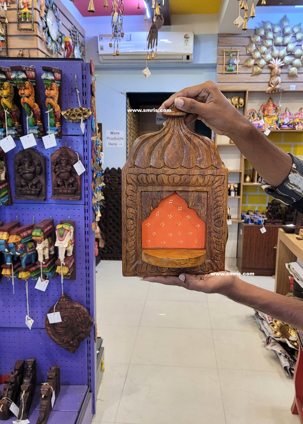 Product Overview: Beautiful Jharokha Mahal Vilakku Maadam Frame handcrafted from durable mango wood and finished in a rich Orange painted finish, inspired by traditional Rajasthani and Chettinad palace architecture.