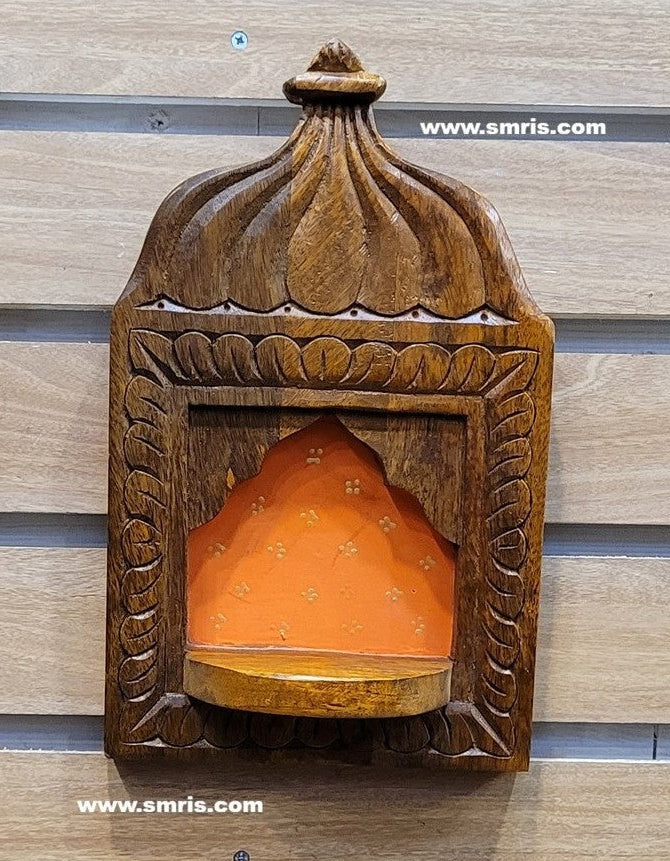 Jharokha Mahal vilakku Maadam Frame Orange Colour Painted Mango Wood Wall Decor Traditional Indian Handicrafts Wood Carving Jaroka (13H x 8L x 4W Inches)
