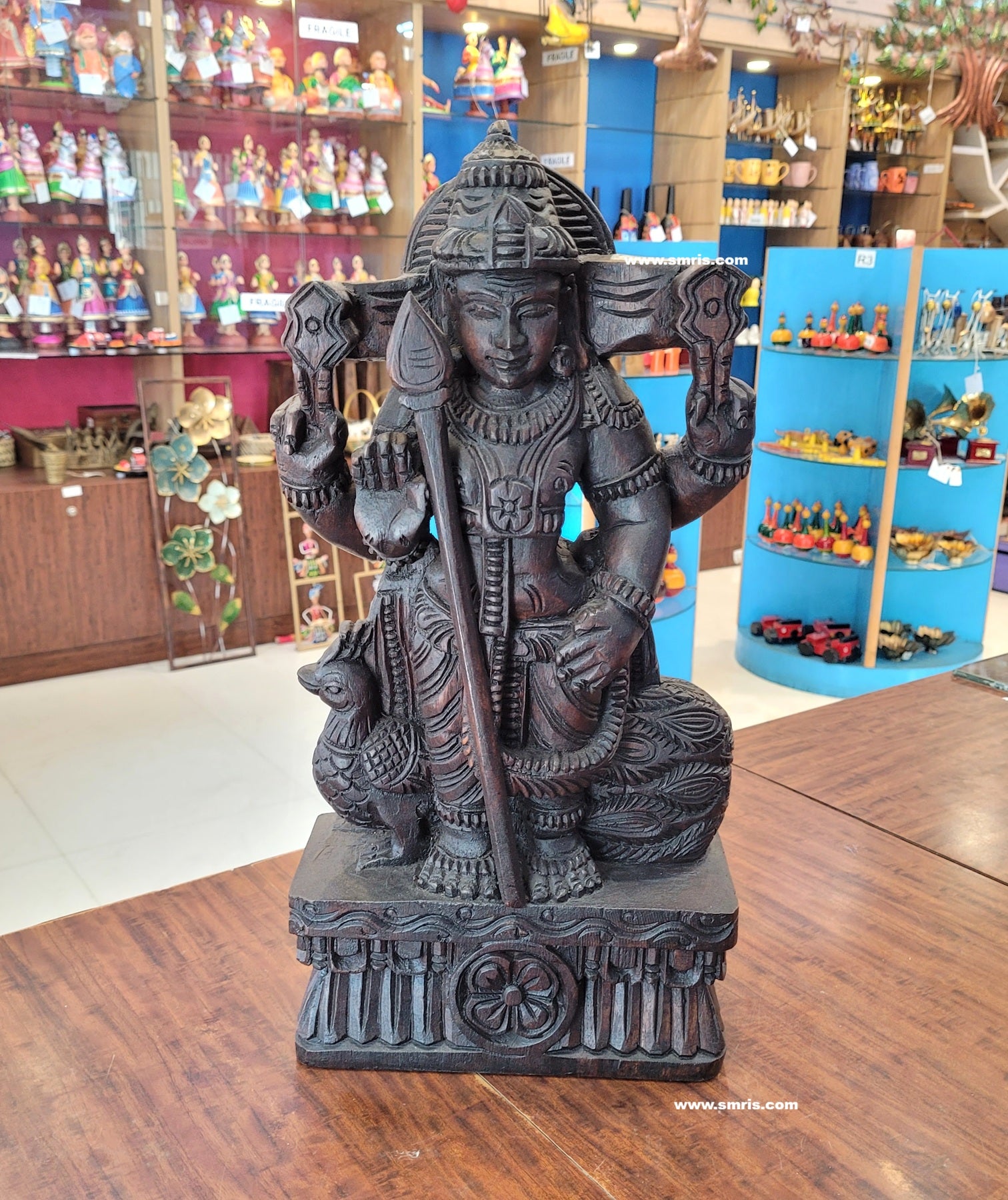 Product Overview – Exquisitely handcrafted Murugar Wooden Statue made from premium Vaagai wood with a rich rosewood colour finish. Designed in authentic Chettinad wooden carving style, this divine sculpture reflects traditional South Indian artistry, making it ideal for pooja and spiritual home décor.