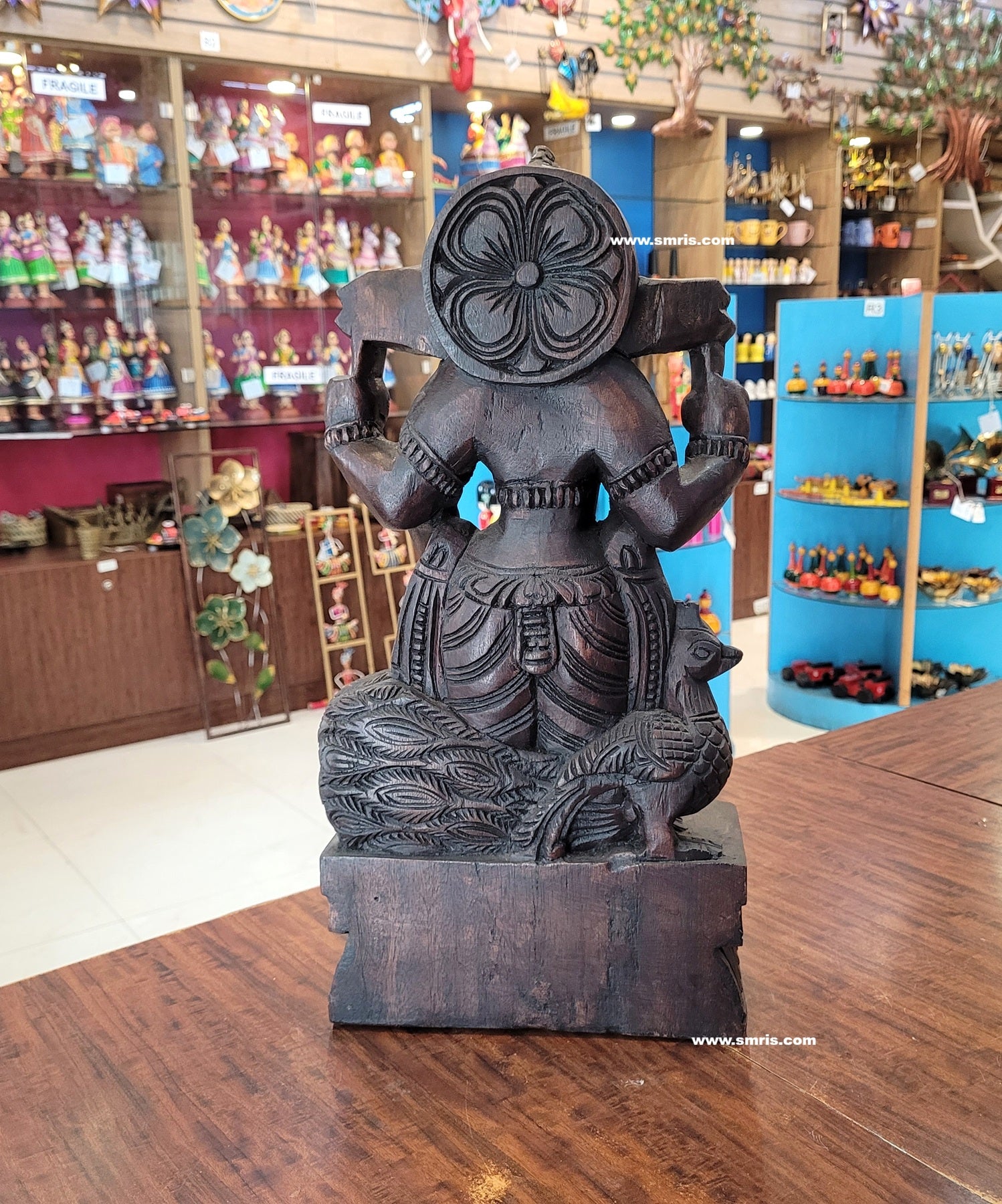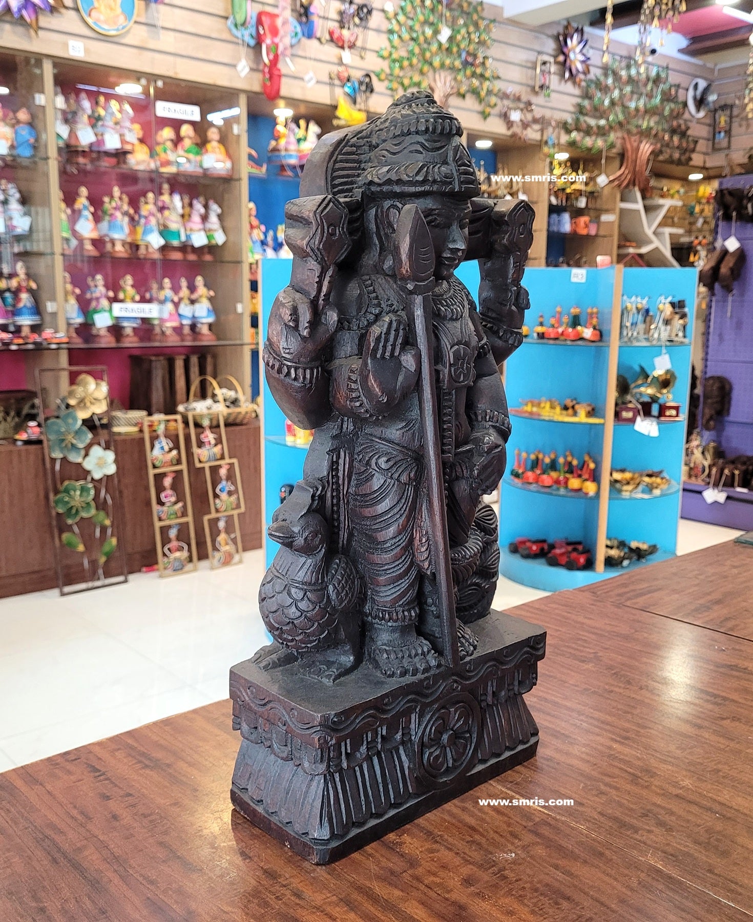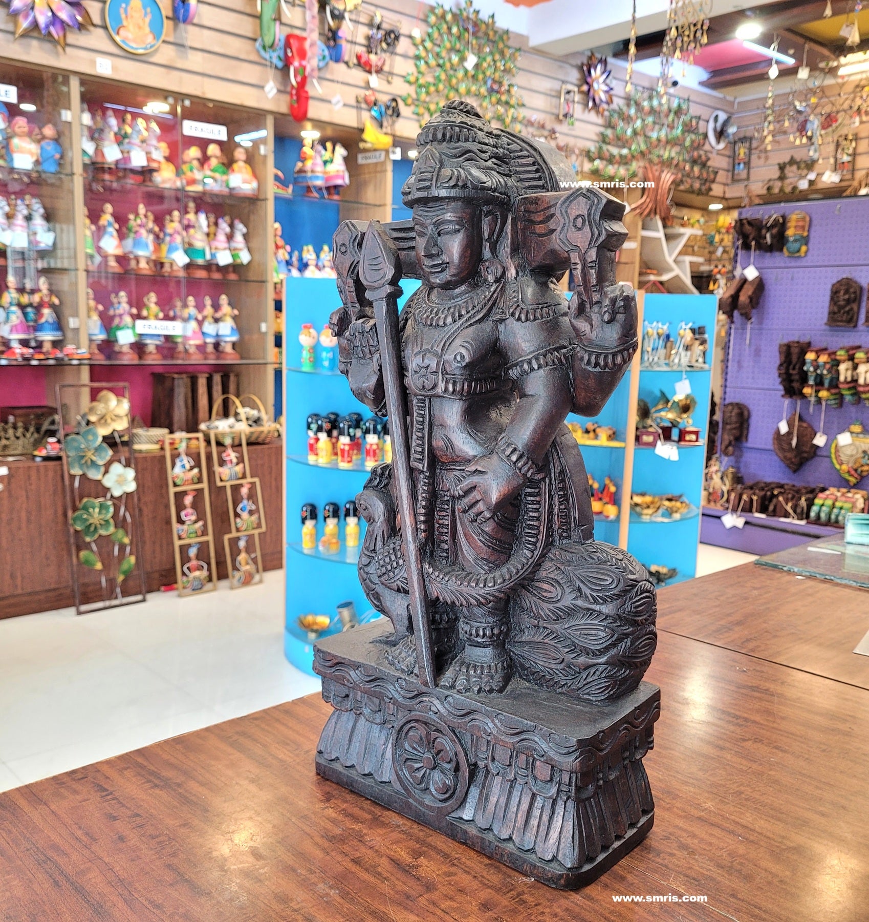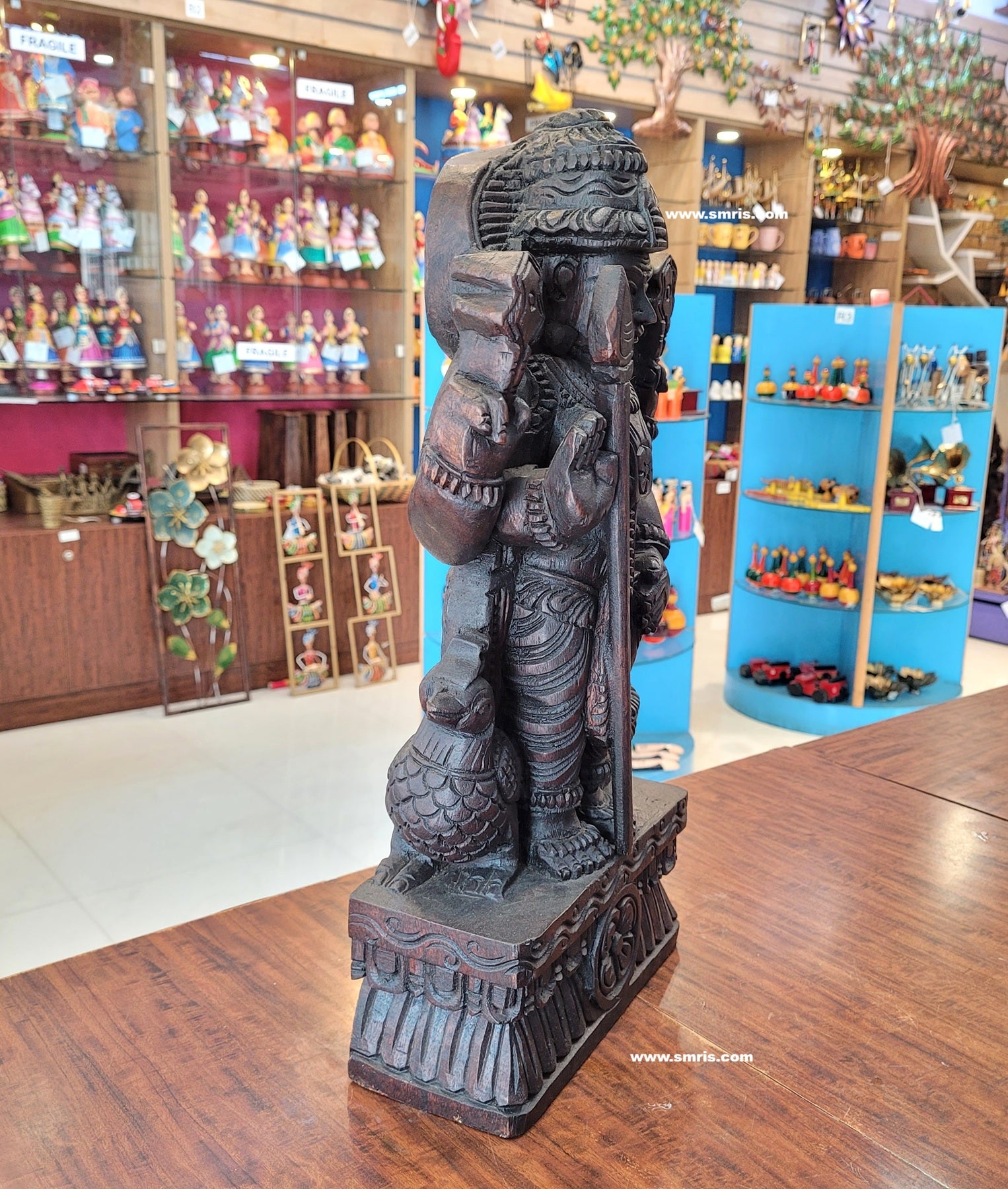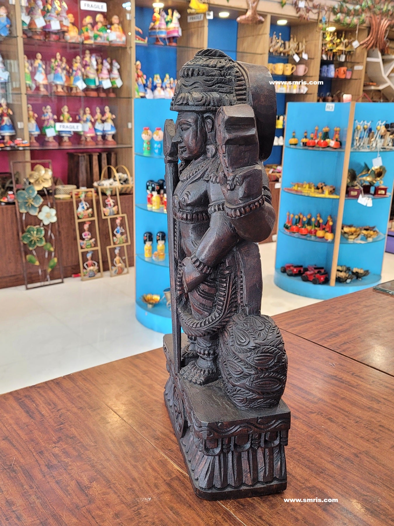 Authentic Indian handicrafts wooden statue handcrafted by skilled artisans, showcasing fine detailing, natural wood grain, and lasting durability.
