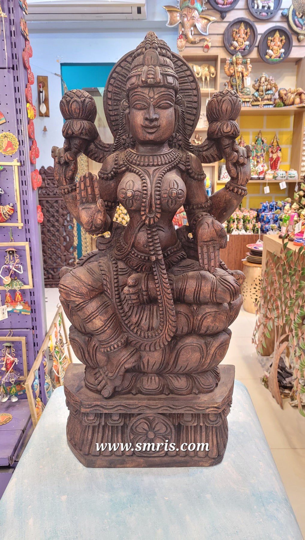 Goddess Lakshmi Wooden Statue / Idol, handcrafted from vaagai wood with a rosewood colour finish