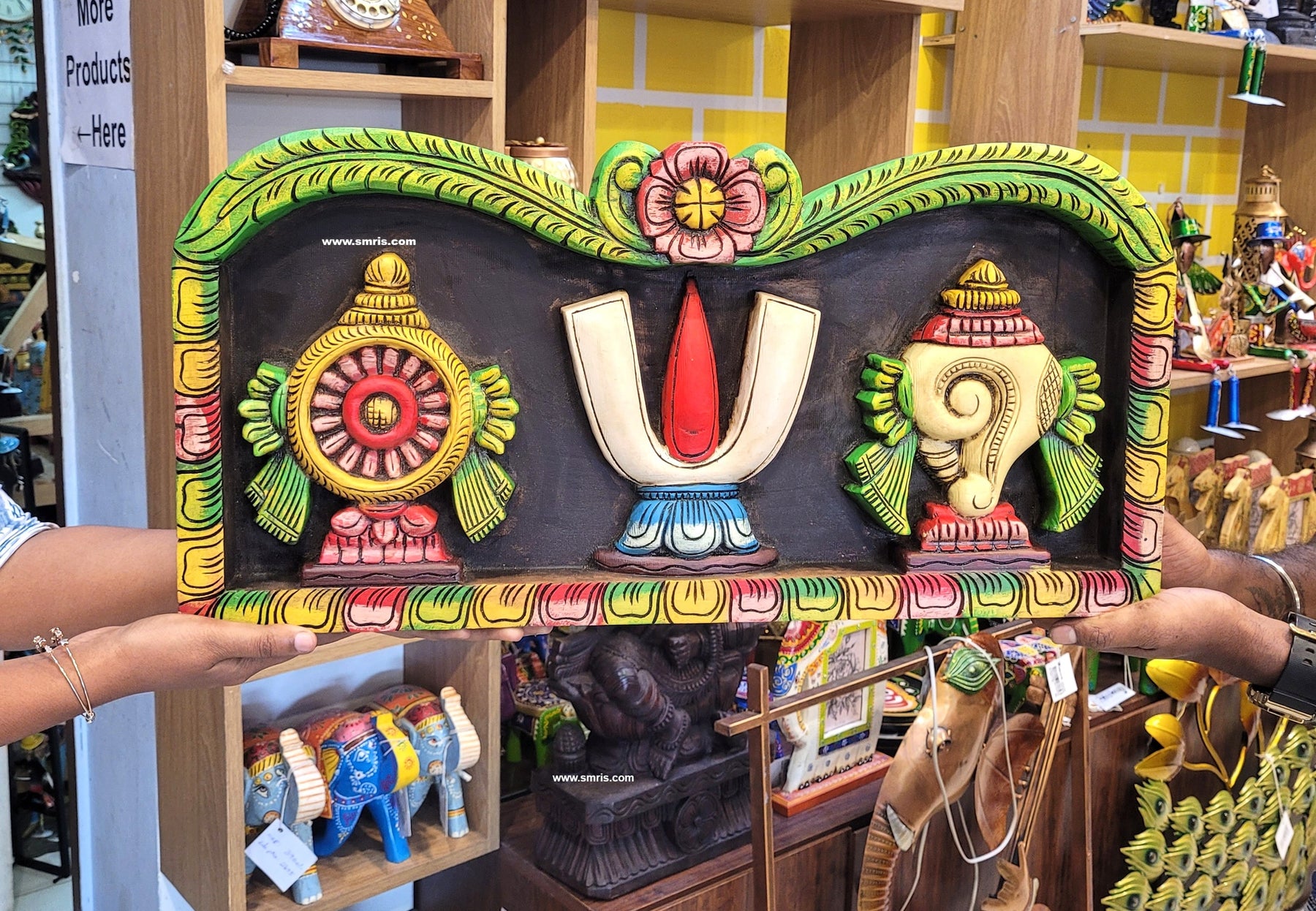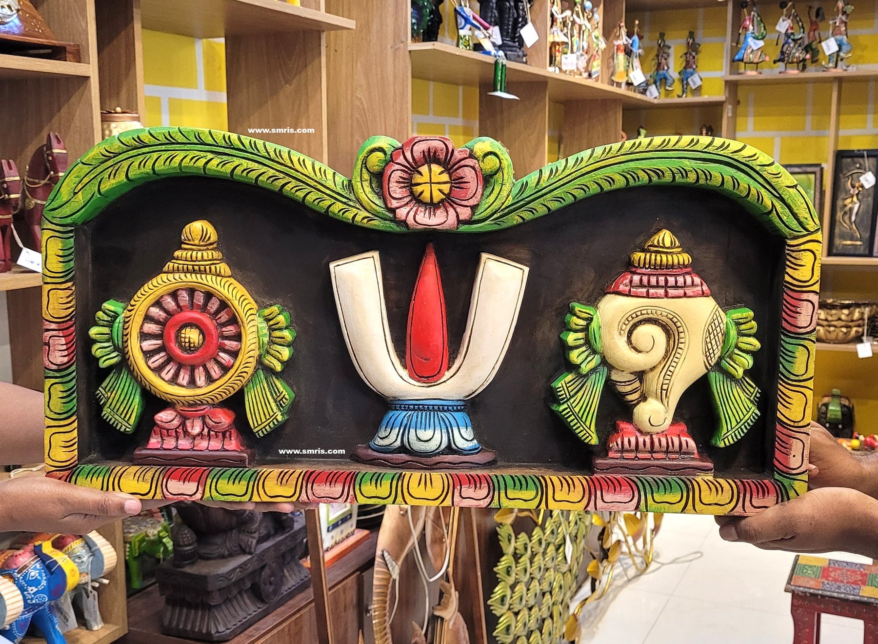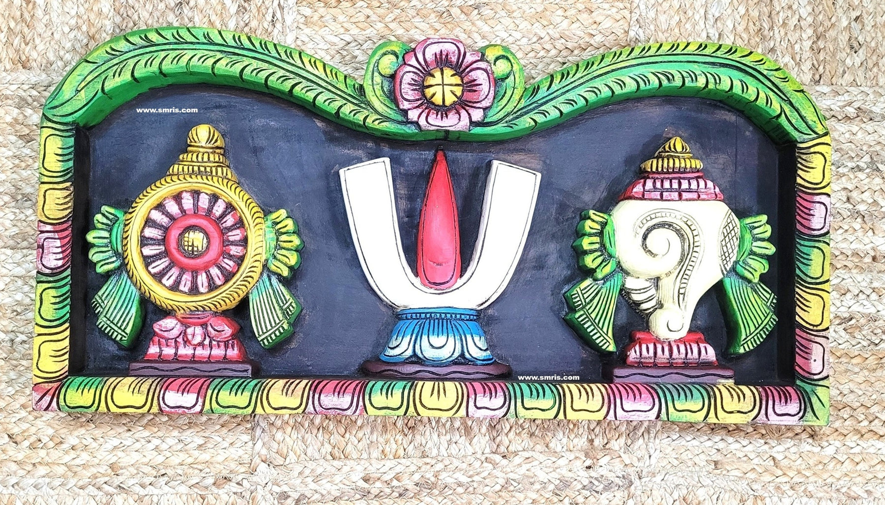 Traditional Namam, Sangu, and Chakram wall panel design.